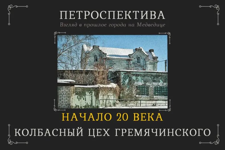 Когда-то здесь кипела производственная жизнь у Арсения Дмитриевича Гремячинского - купца, личного почетного гражданина города, попечителя Женской гимназии и церковного старосты Казанской церкви. На территории Петровска можно даже найти кирпич с клеймом "A.D.г". Вокруг этого здания было поле, куда пригоняли большое количество гусей и уток. Отсюда петровский купец продавал куриные гребешки даже в Англию