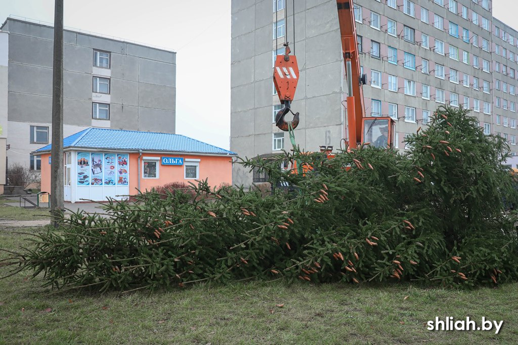 В Восточном микрорайоне Сморгони устанавливают новогоднюю ёлку. Вот как она выглядит