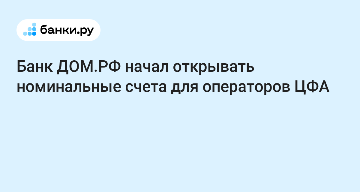 Банк ДОМ.РФ начал открывать номинальные счета для операторов ЦФА