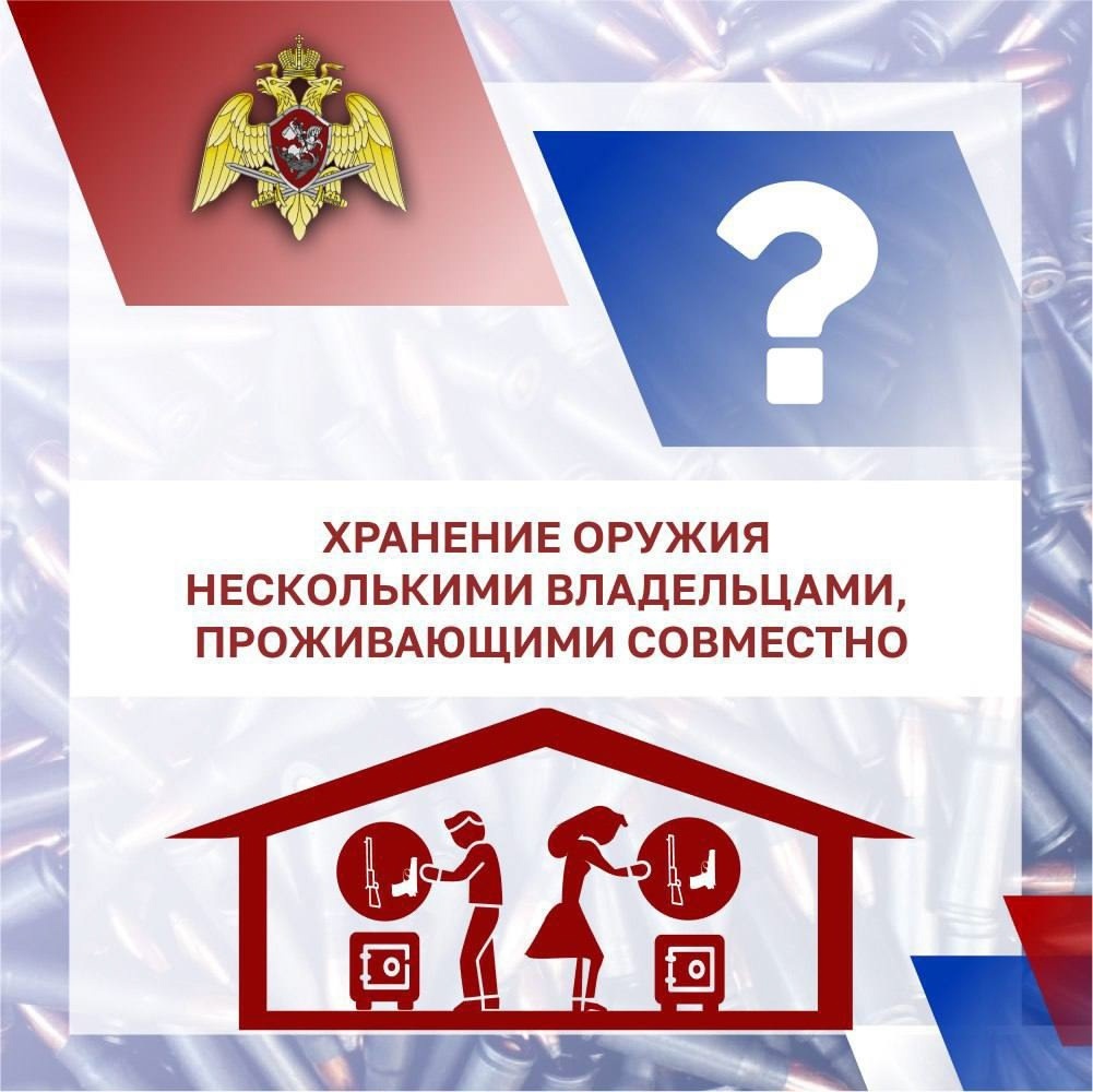 В очередном выпуске рубрики #ОружейнаяГрамотность остановимся на том, как хранить оружие нескольким владельцам, совместно проживающим в одном жилом помещении В соответствии с частью пятой статьи 22 Федерального закона от 13 декабря 1996 г. № 150-ФЗ «Об оружии» принадлежащее гражданам оружие должно храниться в условиях, обеспечивающих его сохранность и исключающих доступ к нему посторонних лиц. Несоблюдение владельцем оружия установленных требований (в частности по передаче принадлежащего оружия или обеспечению его сохранности) влечет его персональную ответственность, в том числе уголовную. «Посторонними лицами» являются ВСЕ лица, не имеющие разрешения на хранение конкретной единицы оружия. В связи с этим хранение в одном жилом помещении несколькими гражданами принадлежащего им оружия надлежит осуществлять в индивидуальных металлических шкафах, исключая доступ к оружию лиц, не являющихся собственниками оружия и не имеющих разрешительных документов. В следующем выпуске подробнее расскаже