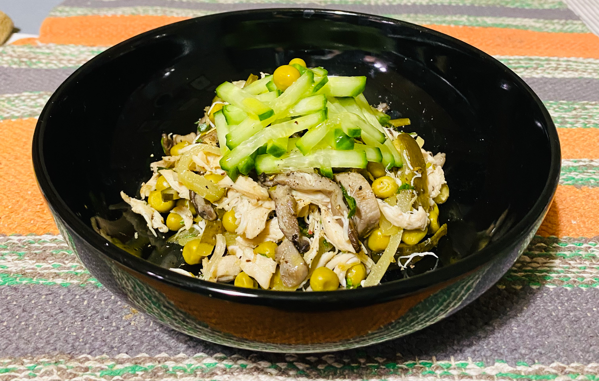ТЕПЛЫЙ САЛАТ с курицей и грибами. Сытный ужин быстрого приготовления.
