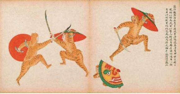 На протяжении веков существовало два цвета: круглый и длинный, которые до сих пор используются, главным образом, для защиты, а не для нанесения ударов. В начале нашей эры, деревянные щиты были покрыты кожей, что делало их тяжелыми и неудобными для передвижения. Вместо этого стали использовать щиты из ротанга, которые недавно появились в Фуцзяне. Хотя они не могут защитить от пуль, они вполне могут остановить стрелы, камни, копья и мечи, поэтому стали использоваться вместо доспехов, особенно на юге, где поля залиты грязью и дождём — в таких условиях они оказались весьма удобны. Щит должен быть легким, прочным и плотным, обеспечивая защиту всего тела со всех сторон. Поясные мечи используются для убийства врагов. Если меч не длинный, острый и лёгкий, то им нельзя будет сразить врага на расстоянии. Солдаты, обученные использованию щитов, должны быть смелыми, сильными, легконогими и ловкими, только тогда их можно обучать этому искусству, чтобы им можно было доверить щит и меч и поставить их впереди войска для защиты всех остальных. Их следует поддерживать как длинным, так и коротким оружием, чтобы они могли отвечать на вызовы противника. Когда они встречают врага, их ряды должны быть плотными и неразрывными, они должны быть готовы к бою и не уставать. Они могут продвигаться, отступать и двигаться влево и вправо, не зная поражений. Вот полезность щитов из ротанга.