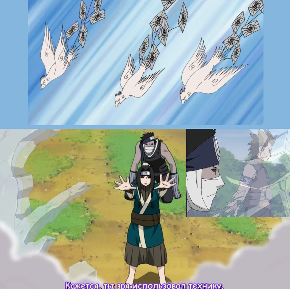 - Нара цепляет свою тень к Какаши, но снимает эффект контроля, таким образом Какаши просто является проводником для ТЕНИ, что бы после в ближнем бою, Забуза попался в тень и можно было его захватить с её помощью.