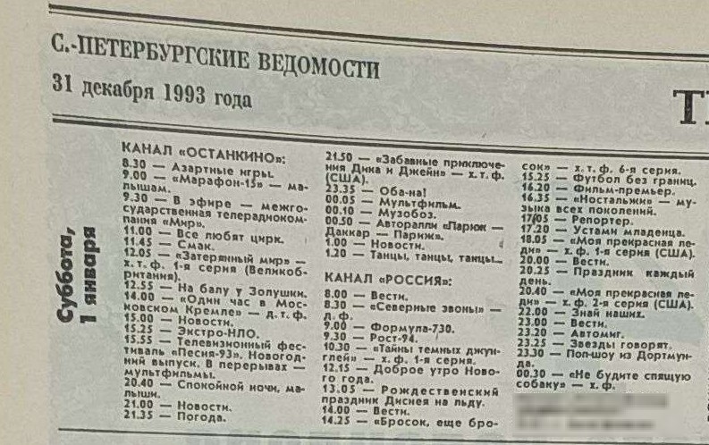В сети Интернет я нашел телепрограмму на 1 января 1994 года.