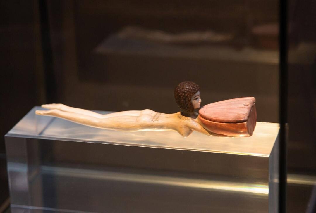 Ложечка в форме плывущей девушки с цветком лотоса периода Нового царства (XIV век до н.э.).
