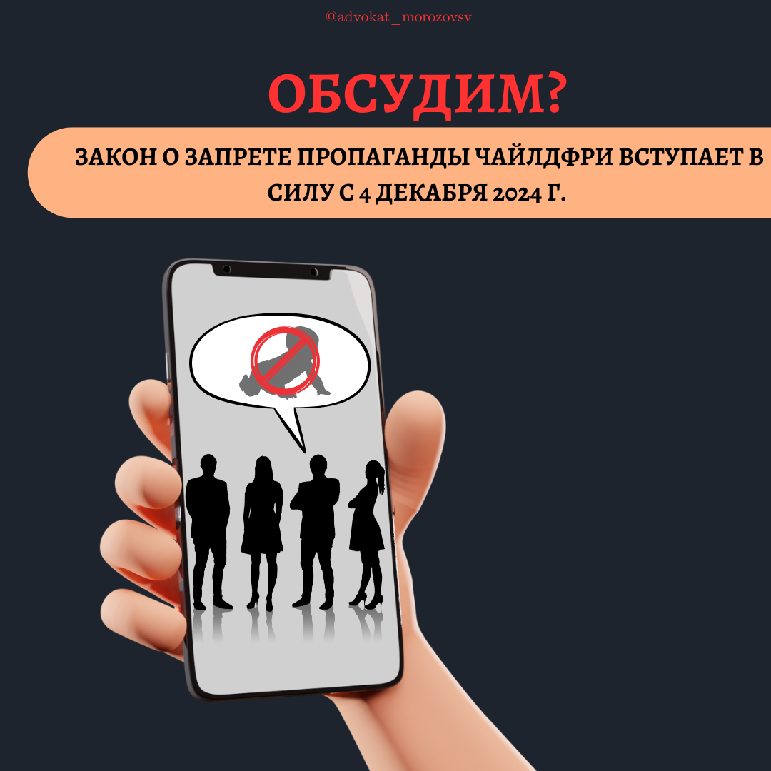 ЗАКОН О ЗАПРЕТЕ ПРОПАГАНДЫ ЧАЙЛДФРИ ВСТУПАЕТ В СИЛУ С 4 ДЕКАБРЯ 2024 Г.