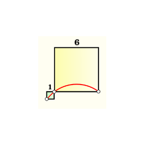 Всем привет, меня зовут Андрей, это снова я. Недавно на канале Валерия Казакова я увидел очень интересную задачу. Все просто. есть часть окружности, известны три точка этой окружности. Две точки проходят через квадрат со стороной 6 (через его нижнюю сторону), две точки этой окружности проходят через маленький квадрат со стороной 1. Всё так, как показано на рисунке. Надо найти радиус окружности. Очевидно, что на рисунке изображена ровно одна четвертая окружности. При желании это даже можно доказать, например: Если построить второй квадрат 1 на 1 из точки D' так, как это показано на рисунке, то станет очевидным, что для построения всей окружности целиком достаточно 4 больших квадрата и 4 малых, то есть один большой квадрат и один малый - это ровно четверть круга. Можно привести и еще одно доказательство: построим треугольник ABC так, как это показано на рисунке. Очевидно, что угол ВАС равен 90 градусов. А вся окружность - это 360, то есть опять мы видим, что у нас ровно четверть круга.