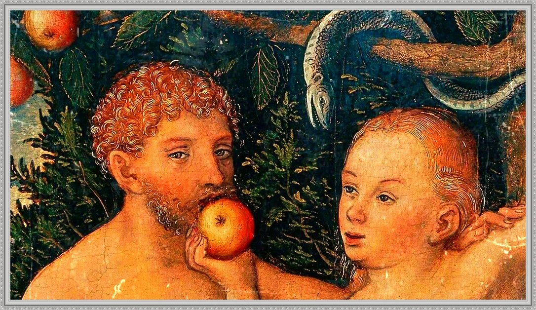 "И сказал змей жене: нет, не умрете, но знает Бог, что в день, в который вы вкусите их, откроются глаза ваши, и вы будете, как боги, знающие добро и зло. И увидела жена, что дерево хорошо для пищи, и что оно приятно для глаз и вожделенно, потому что дает знание; и взяла плодов его и ела; и дала также мужу своему, и он ел. И открылись глаза у них обоих, и узнали они, что наги, и сшили смоковные листья, и сделали себе опоясания."