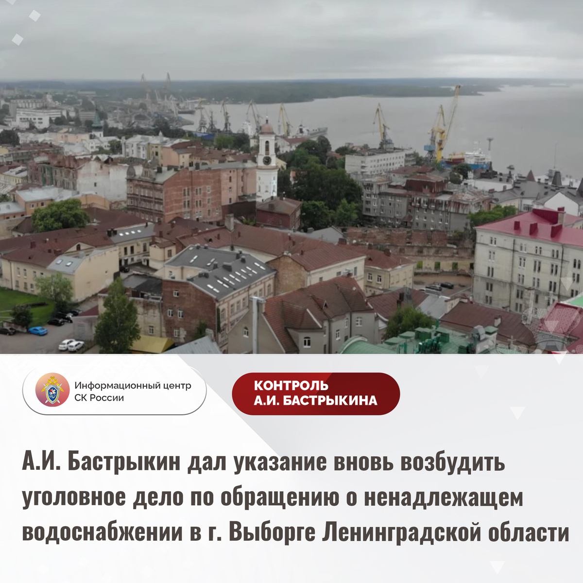 А.И. Бастрыкин дал указание вновь возбудить уголовное дело по обращению о ненадлежащем водоснабжении в г. Выборге Ленинградской области