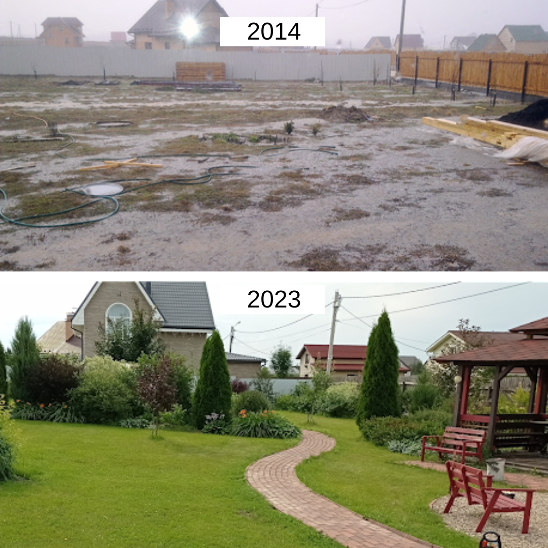 Любите разглядывать такие фотографии? Только так можно увидеть грандиозные изменения и понять, сколько проделано работы, чтобы поле из одуванчиков превратилось в стильный современный сад.