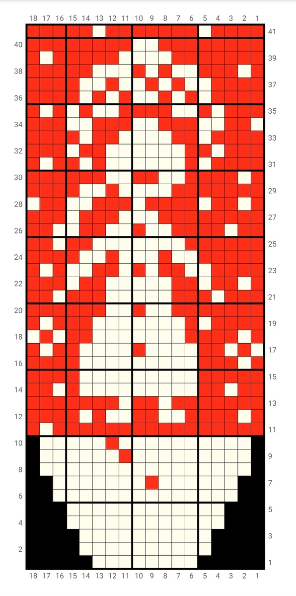 Моя подборка схем для вязания носочков, варежек, на кармашки. Схемы миниатюрные на 16 петель, на 17 петель, на 18 петель. Снегурочка, Дед мороз, снежинки. Эти схемы составляла я. Совпадения с другими схемами случайны. Снегурочка раппорт на 18 петель. Следующее фото как схема будет выглядеть на вязальном полотне. Глазки - лучше протянуть красную нить протяжкой в зоне глаз два раза. Следующая схема дед Мороз с подарками. Каким дедушка Мороз смотрится на образце: Снежинки. Снежинка 1 Образец снежинки 1: Снежинка 2 Эффектная и популярная снежинка Снежинка 3. Снежинка 4 На сегодня снега хватит.