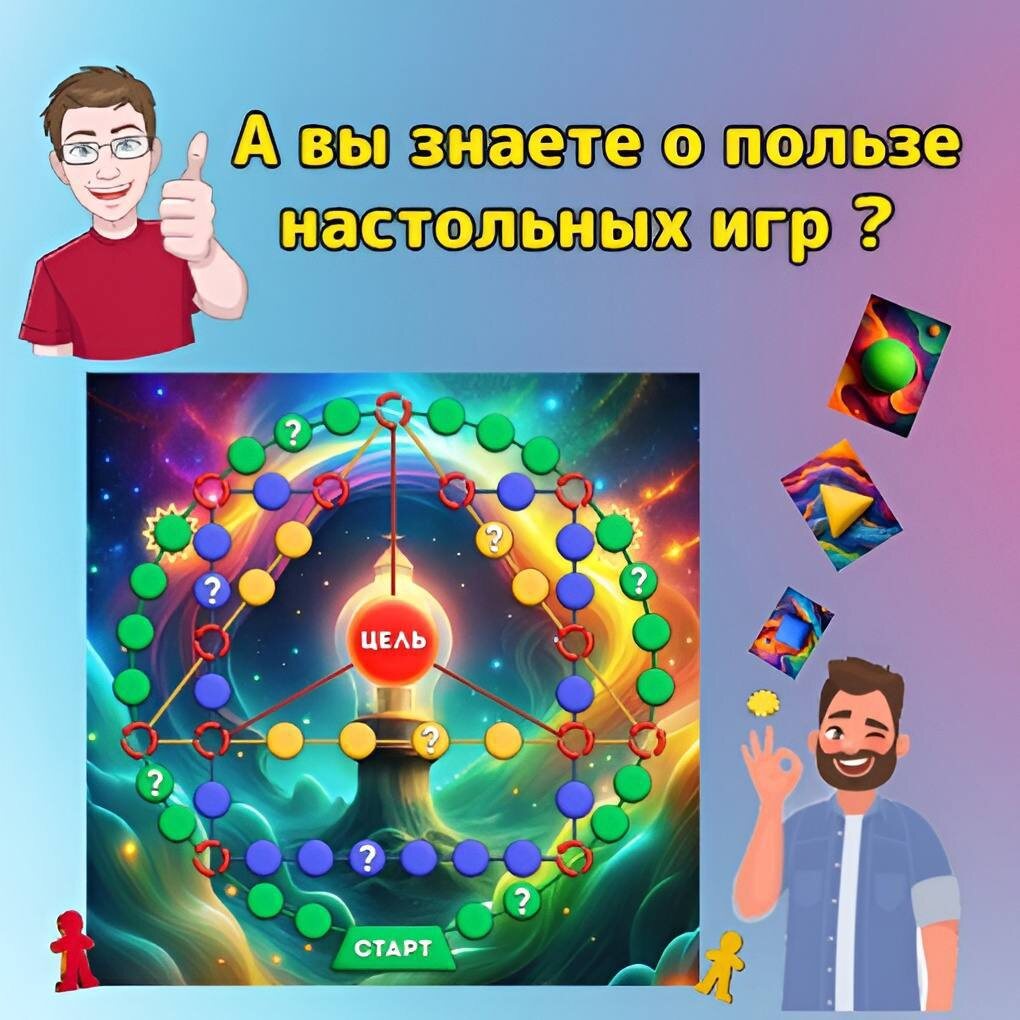 Настольные игры — это не просто весёлое времяпрепровождение. Они могут приносить настоящую пользу для вашего ума, эмоций и даже здоровья! Вот несколько неожиданных фактов: 🌟 Развитие мозга: Игры требуют логики, стратегического мышления и креативности. Каждая партия — тренировка для вашего мозга, которая улучшает память, концентрацию и аналитические способности. 🌟 Эмоциональный интеллект: Во многих играх нужно понимать мотивацию соперников и строить свою тактику. Это помогает лучше читать эмоции людей и развивать эмпатию (Способность понимать и разделять мысли или чувства окружающих). 🌟 Антистресс и счастье: Настольные игры объединяют, создавая теплую атмосферу и помогая забыть о повседневных заботах. Кроме того, успехи (даже маленькие!) стимулируют выброс эндорфинов (гормонов радости). 🌟 Улучшение общения: Во время игры мы учимся договариваться, решать конфликты и эффективно выражать свои мысли. Это полезно не только за игровым столом, но и в жизни. 🌟 Ценность времени вместе: Наст