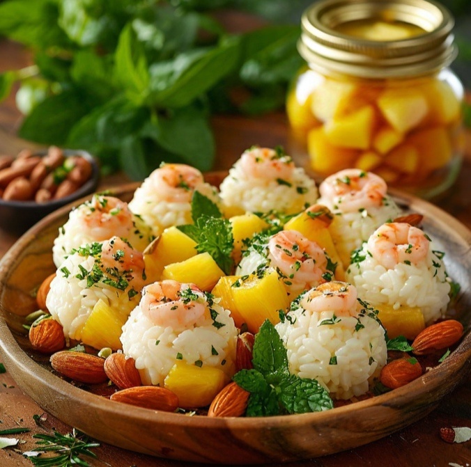 - Вооружитесь деревянной шпажкой – волшебным стержнем кулинарного искусства. Начните творить: первым пойдёт миндальный орех – золотой ключик к этому вкусному замку. Затем, нежно наденьте маленький сырный шарик – белоснежную луну, полную молочного очарования. После добавьте кольцо ананаса – солнечный диск, излучающий сладкий свет. Завершите композицию креветкой – грациозной жемчужиной, сверкающей на вершине этой гастрономической башни.