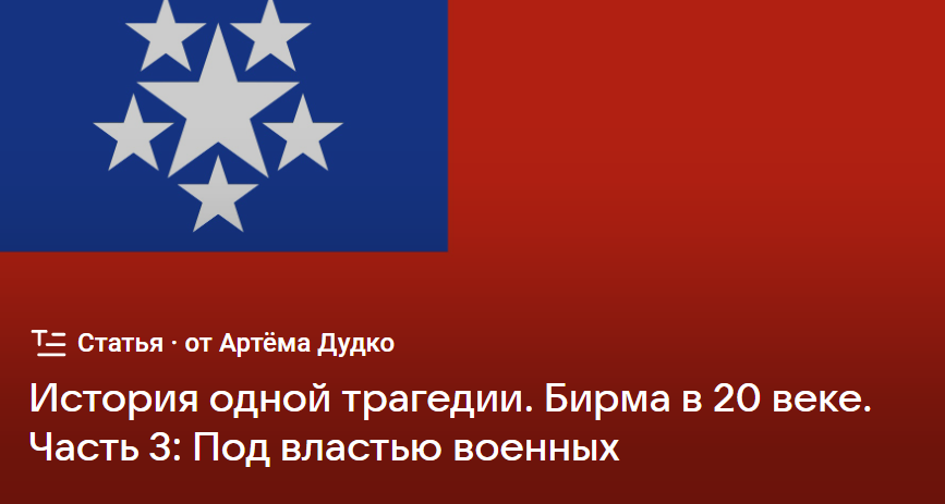 Так начинается период диктатуры Не Вина, который фактически продлился вплоть до 1988 года. Именно в этот период армия становится важным элементом политической системы Бирмы. Это считается большинством исследователей негативной особенностью государственной модели страны, замедляющим её развитие и препятствующей нормальной модернизации. С другой стороны, армия по крайней мере попыталась вытянуть страну из бедности и пучины гражданской войны. Насколько у них это получилось? Попробуем разобраться. Мы продолжаем непростую историю Бирмы в 20 веке.