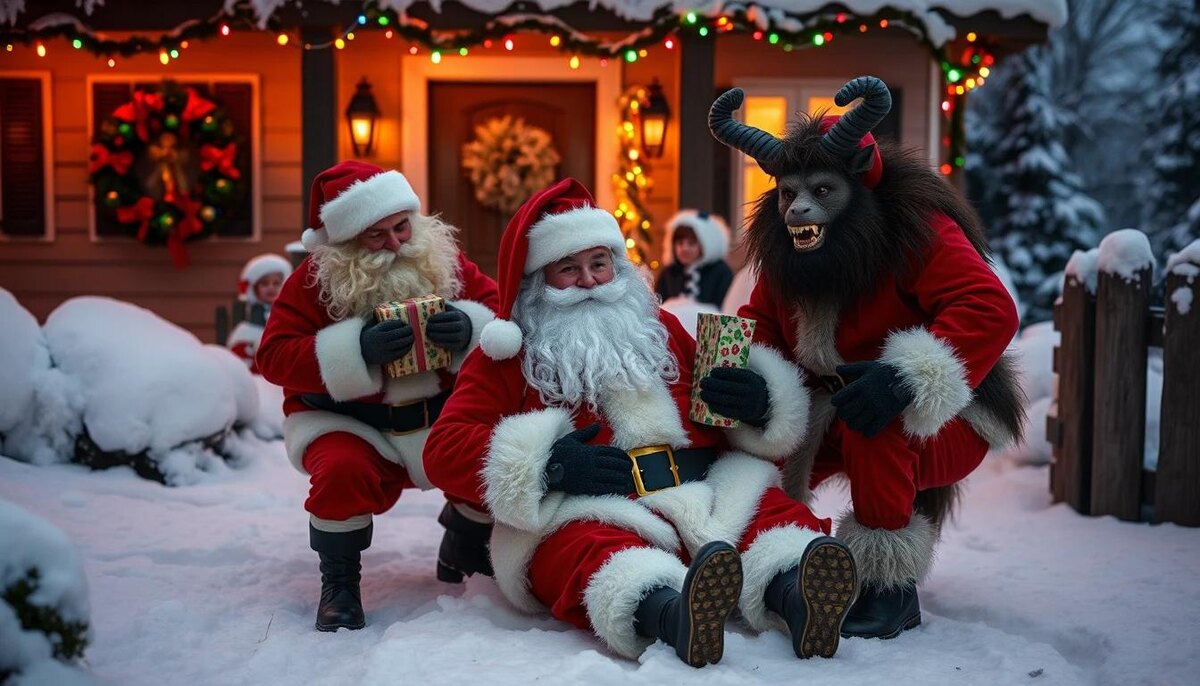 В загородный дом ворвался Крампус (озорной антагонист Рождества) и похитил Санту! Без него праздник не состоится. Участникам нужно спасти старика и вернуть подарки, выполняя задания, которые Крампус разбросал по всему участку. Но будьте готовы: Крампус оставил не только загадки, но и подколы! Квест начинается с того, что участники находят письмо. Но не обычное — это видеосообщение от "похищенного" Санты: "Друзья, спасайте! Этот волосатый озорник Крампус утащил меня в снег, а подарки разбросал по всему двору! Найдите меня, или рождество отменяется!" Участники выходят во двор, где из снега торчат бутылки с ключами и загадками. Нужно разбить лёд (без алкоголя тут не обойдётся — рядом лежит горячий глинтвейн для согрева). На ёлке висят коробочки с загадками. В одной из них — координаты следующей точки. Но чтобы их получить, нужно открыть коробки, отгадывая загадки: Финал завершается торжественным вручением "орденов спасителей Рождества" — шо