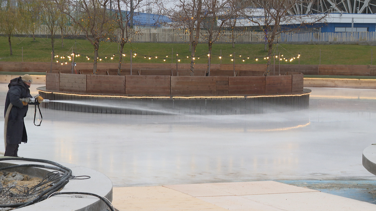 Легкий морозец в Волгограде внушает оптимизм любителям активного отдыха. На обильные снегопады рассчитывать пока не приходится, а вот прокатиться по льду вполне реально. Большой каток открыли в Центральном парке культуры и отдыха. Там же можно сделать уникальные фото с елкой, которая установлена она вверх тормашками! Все верно: поливать нужно не только цветы по весне, но и каток накануне зимы. Ведь именно так ледовая арена приобрела необходимую толщину для комфортного катания на коньках. На самом большом открытом катке в Волгограде сделали подсветку и даже покрасили лед. «Почему белый лед? Потому что белый лед – это эстетика, это красиво, это приманивает людей. И самая основная функция этого белого льда – отражать ультрафиолет. Соответственно, лед меньше подвержен таянию», – рассказал заместитель главного инженера Иван Морозов. И куда же без главного атрибута на льду! Сегодня на выбор есть тысяча пар коньков. Для трети из них этот сезон станет первым. Фигурная обувь на любую ногу, в то