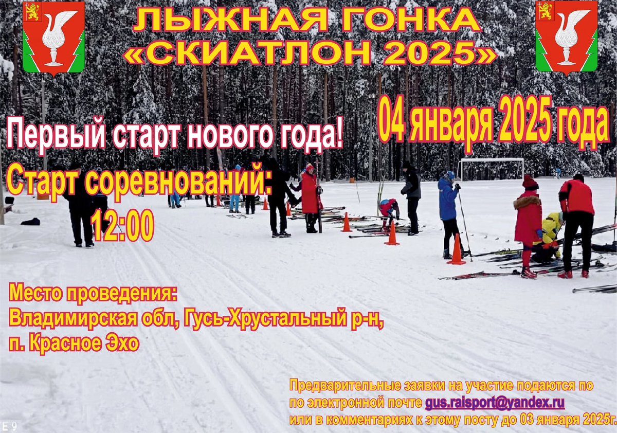 ✋Уважаемые друзья, любители лыжного спорта! ☝Сообщаем Вам хорошие новости! 💥Открыта регистрация на первую лыжную гонку в 2025 году "Скиатлон 2025"! Очень надеемся на хорошую зимнюю и снежную погоду!🙏🙏🙏🙏 Регистрация и дополнительная информация по ссылке 👉https://orgeo.ru/event/39610 ❗Приглашаем всех желающих принять участие ☝🏻Предварительные заявки на участие также можно подавать по телефону 📞8(49241) 3-54-71, по электронной почте gus.raisport@yandex.ru или ☝🏻в КОММЕНТАРИЯХ К ЭТОМУ ПОСТУ до 27 декабря❗