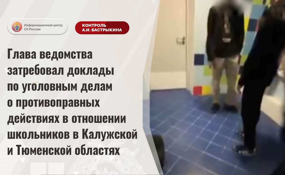 Глава ведомства затребовал доклады по уголовным делам о противоправных действиях в отношении школьников в Калужской и Тюменской областях