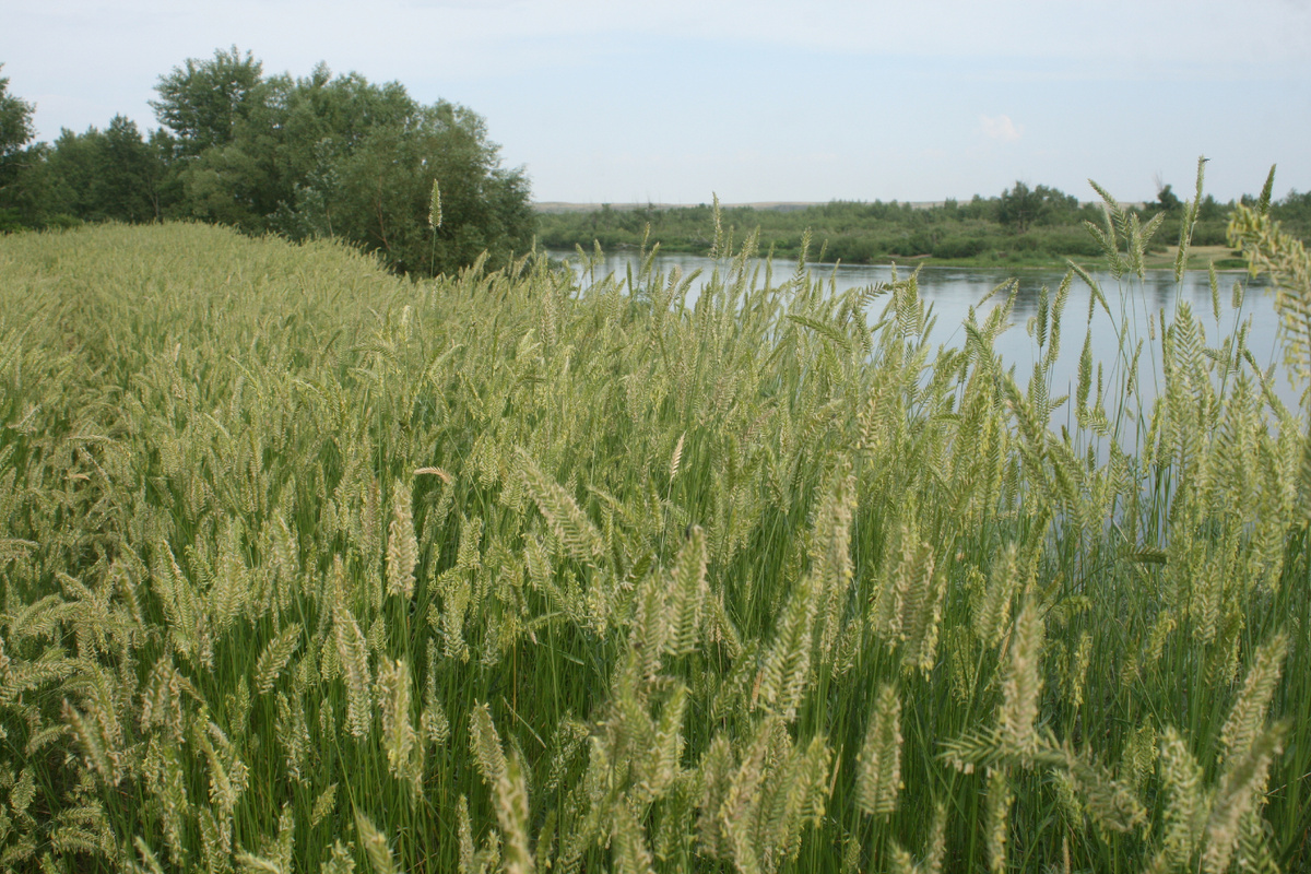 Эту картинку (архив 2024.06.15) с полным правом можно назвать: житняковое наводнение. На Урале – большая вода. А на высоком сухом лугу – большая трава. Смотрите, как льется с пригорка «река» житняка. Это растение считается экологически успешным сорняком. Оно влегкую вытесняет с берегов Урала многих зеленых аборигенов. Ну, может, кроме тех, кто любит обильную влагу и спустился прямо к урезу воды. А берег повыше и посуше затоплен житняком. Так что одна из речных террас, сухая, хорошо проветриваемая, богатая песчаными свеями, житняку проиграна.