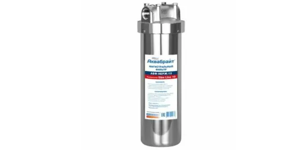 Достойное место в топе занимает Аквабрайт АБФ 10 12 SLIM. Фильтр предназначен для грубой очистки воды и предотвращения образования накипи. Функционален и сочетает в себе такие процессы, как очистка, минерализация, смягчение воды, а также удаление бактерий, механических примесей, органических веществ, привкусов и запахов. Он подходит для жесткой холодной воды.