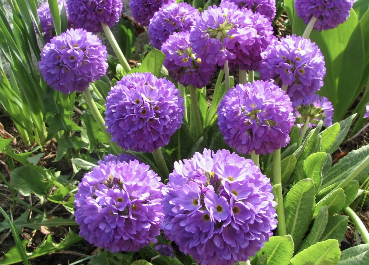 Аккуратные, округлые, ярко-зеленые розетки листьев и огромные сферические соцветия смотрятся очень необычно. Десятки парящих ярких головок, распускающихся достаточно поздно, ничуть не похожи на скромные первые весенние звезды из всего разнообразия примул. Эти великолепные примулы ценны и как украшение весеннего сада, и как срезочные цветы.