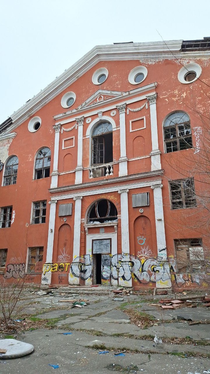 Несмотря на запустение, былая роскошь здания все еще заметна: искусно выполненные колонны и капители, лепнина и кессоны – архитектурные изыски советской эпохи, украшающие как фасад, так и интерьер дворца культуры.