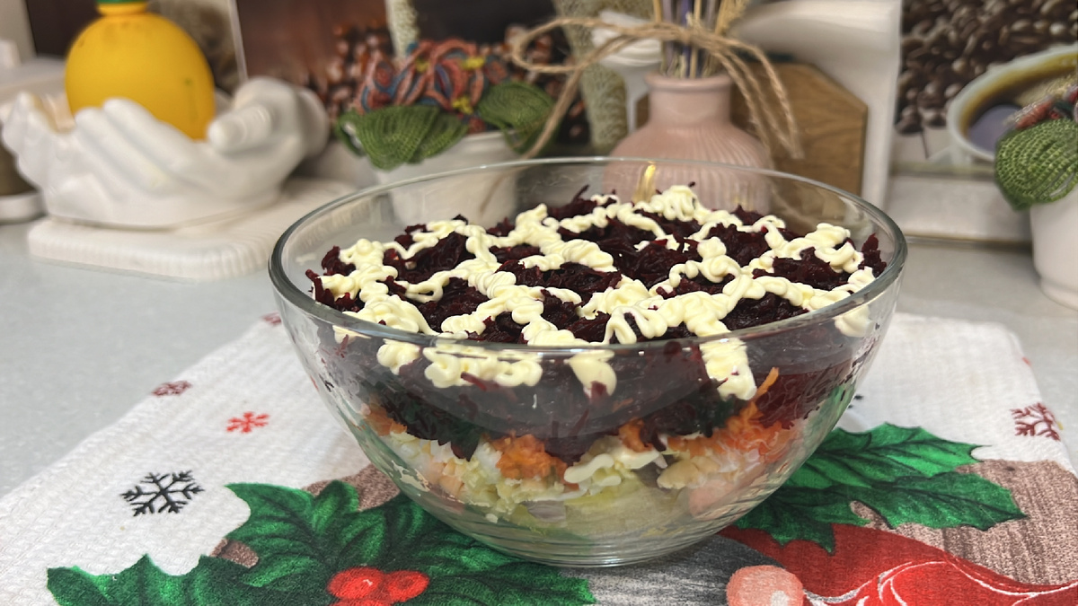 Салат сельдь под шубой – это классическое новогоднее блюдо, которое не теряет своей популярности уже много лет. Это блюдо готовится из простых ингредиентов, но имеет неповторимый вкус и аромат. В этой статье мы расскажем, как приготовить салат сельдь под шубой на Новый год. Ингредиенты: - Сельдь соленая – 2 шт. - Картофель – 4 шт. - Морковь – 3 шт. - Свекла – 2-3 шт. - Лук репчатый – 1 шт. - Майонез – по вкусу. Приготовление: 1. Отварите картофель, морковь и свеклу до готовности в подсоленной воде. Охладите и очистите от кожуры. 2. Нарежьте соленую сельдь мелкими кубиками. 3. Нарежьте лук мелкими кубиками и обжарьте на растительном масле до золотистого цвета. 4. Нарежьте картофель, морковь, свеклу и лук мелкими кубиками. Выложите на блюдо слоями, каждый слой смазывая майонезом. Первый слой – картофель, второй – сельдь, третий – лук, четвертый – морковь, пятый – свекла. 5. Украсьте салат зеленью и подавайте к столу. Салат сельдь под шубой готов! Приятного аппетита!