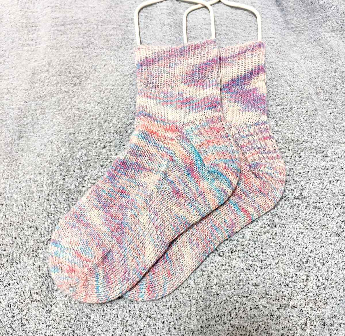 Всем привет! Я к вам с традиционными носочными новостями. Вязание носков в ноябре шло с устоявшейся скоростью 3 пары за месяц. Как я уже писала в статье про покупки ноября, я всё таки купила новые расцветки пряжи (аж 8 штук и 1 случайный дубль). В итоге решила, что буду чередовать в работе носки из новых и старых расцветок. 1. Так как у меня в работе на начало месяца уже были носки из Nako Boho в меланжевом цвете Sunset Clouds, сначала я закончила их. Первую пару из этой пряжи я вязала на свой размер 39-40, а эту на 37-38. Спицы 2,25мм, 60 петель, ушло 57 грамм.