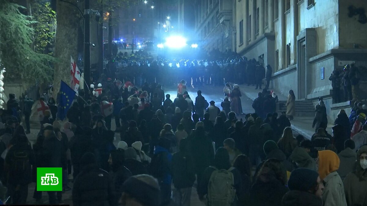 [ Смотреть видео на сайте НТВ ] Седьмую ночь подряд сторонники оппозиции протестуют в центре Тбилиси. В среду вечером в центре грузинской столицы у стен парламента вновь собрались протестующие. Это уже седьмая ночь, когда в центре Тбилиси сторонники оппозиции проводят антиправительственные митинги. Обстановка в Тбилиси относительно спокойная. Полицейские оцепили центральный квартал. Они с вечера останавливали всех, кто направляется на проспект Руставели и досматривали личные вещи в поисках петард и коктейлей Молотова. По последней информации, сейчас тысячи людей добровольно покинули площадь перед парламентом и ушли по проспекту Руставели к зданию оперы. Протестующие разожгли несколько костров, чтобы согреться. Баррикады не возводят. У здания парламента остаются несколько сотен людей. Пока обстановка спокойная, провокаций нет. Ранее в среду в Грузии прошли массовые обыски в офисах оппозиционных партий, активисты которых принимали участие в недавних беспорядках. Представители Департамент