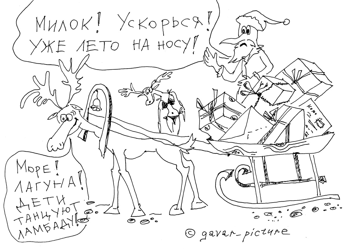 Ага, СМИ пишут: "Дед Мороз отправится в путешествие по Италии, Франции и еще восьми странам перед Новым годом." Дедушка, ты там ничего не перепутал? Это вообще-то моё желание, которое ты не спешишь исполнять уже 6 лет... Ты будешь по заграницам разъезжать, а я ни "хотя бы спицей в колеснице, но за границу", ни на твоих санях с оленями - никак? А нам, значит, билет на аэроэкспересс за 650 рублей и внутренний туризм в виде тура на Васюганские болота за 140 тысяч? У нас есть традиция - встречаться в аэропорту с друзьями, когда они прилетают в Шереметьево и улетают на отдых, а потом мы снова встречаемся, когда они возвращаются с отдыха и делают пересадку в Шереметьево. Так вот минутка занимательной арифметики: семья из 3х человек два раза совершает поездку в аэропорт, купив билеты за 650 рублей. Это 12 билетов за 650 рублей.... И песня "Ротару "можем мы не встречаться годами, но друзья остаются друзьями" обретает новый смысл. Дед Мороз, сделай уже что-нибудь, чтобы наши желания исполняли