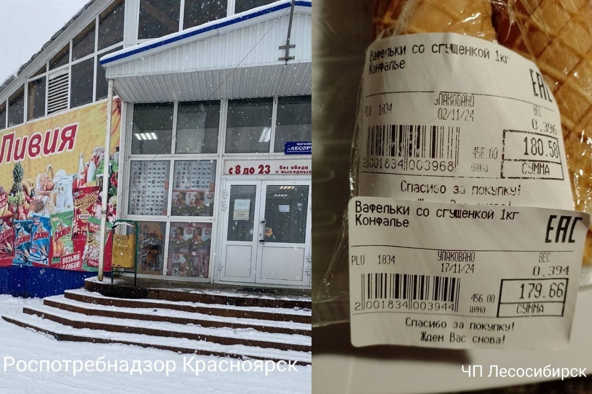 В Лесосибирске продуктовый магазин «Ливия» продавал местному жителю вафли со сгущёнкой и двойной маркировкой. Как сообщили в Роспотребнадзоре, из-за этого кондитерская продукция «помолодела» на две недели и «похудела» на два грамма. — Безусловно, это нарушение законодательства. Ведь такая маркировка вводит потребителя в заблуждение относительно качества и безопасности реализуемого товара. Наши специалисты провели выездное обследование, в ходе которого были выявлены нарушения в части маркировки товара. Роспотребнадзор по Красноярскому краю. Индивидуальному предпринимателю Ягуртовой Л.И. объявили предостережение о недопустимости нарушений. фото: t.me/rospotrebnadzor_krsk