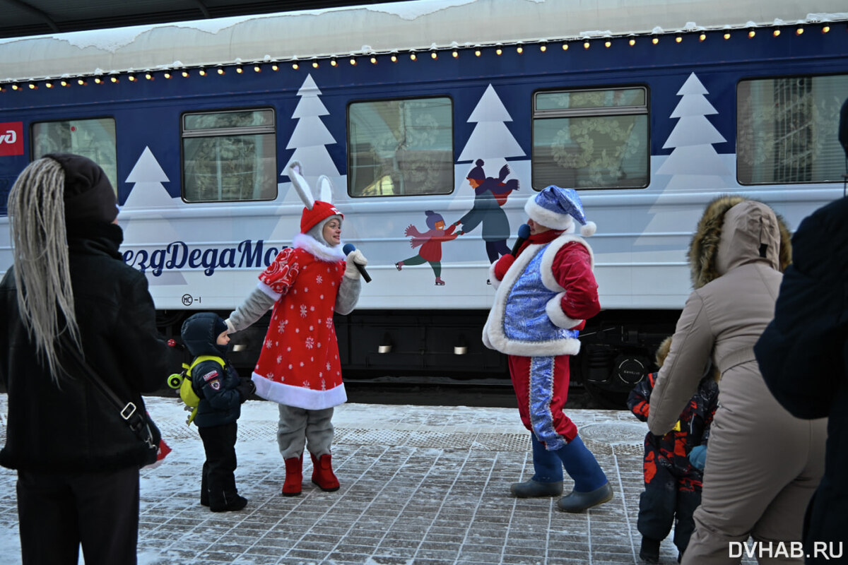 Сегодня в Хабаровск приехал праздничный поезд Деда Мороза. Ранее он уже посетил Комсомольск-на-Амуре, а далее отправится в Уссурийск и Владивосток. В этом году путешествие новогоднего волшебника началось с 19 ноября. Поезд будет работать в Хабаровске до 18:00. Посетители, купившие билеты, посетят передвижную резиденцию Деда Мороза, а также кукольный театр. Кроме того, для всех гостей поезда доступны вагон-ресторан и вагон-лавка с северными сувенирами. Поезд будет в пути до 11 января, он посетит более 60 больших и маленьких населенных, видео пунктов и преодолеет почти 30 тысяч километров. Отметим, что впервые в путешествие по стране Дед Мороз из Великого Устюга отправился в 2021 году и с тех пор посетил более 170 городов. Напомним, что в прошлом году Хабаровск не попал в список городов, в которые приезжал поезд новогоднего волшебника. Он также не заезжал во Владивосток и Биробиджан, однако в списке была Чита. Отмечалось, что это было связано с техническими особенностями поезда. Фото, ви