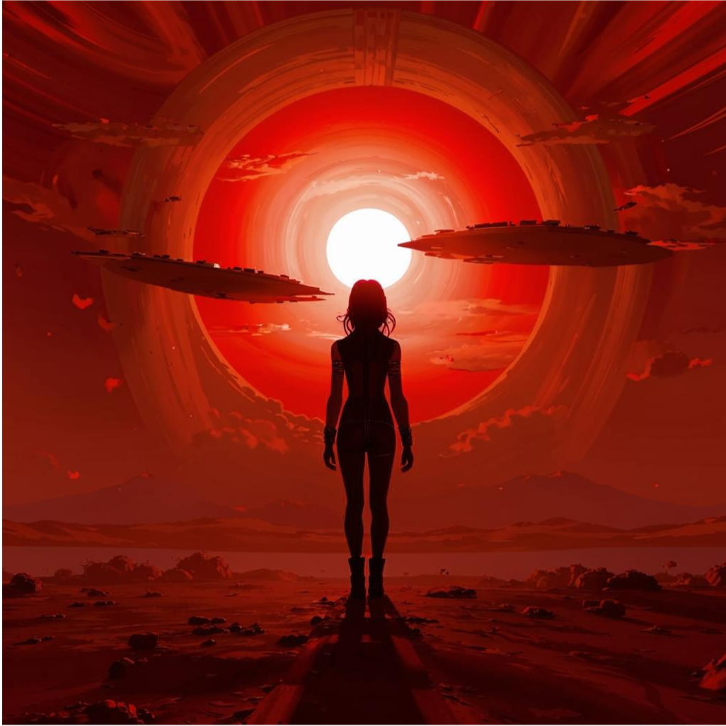 Елена осмелилась взглянуть на пейзаж и ужаснулась. Она в аду. Новое Солнце напоминало раскалённое блюдце с рубиновыми краями, оттого и неба каскад походил на кровавый. Сама звезда на горизонте превышала диаметр Старого Солнца раз в десять. Поверхность размытой линией поделена на две части: свет и тень. Сталкиваясь, они образуют коридор, пригодный для жизни и простирающийся на несколько километров. За его пределами - смерть либо от холода, либо от огня.