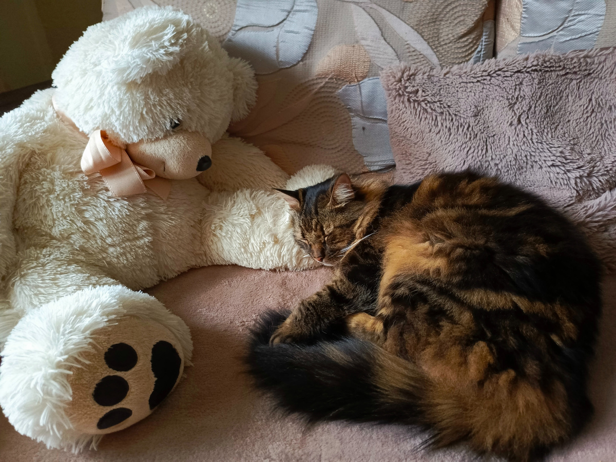 Всем привет! С вами Кузя Кусалочкин и сегодня расскажу какой я молодец. После того как я устроил веселую ночь хозяевам, они не выспались и злились, решил больше их пока не доставать и вести себя прилично. С утра получил свой паштетик и таблетку, ушел спать с мишкой: Использовал его лапу как подушку: Спал, а хозяйка своими делами занималась. Потом я проснулся и мне стало скучно, пришел к хозяйке. В итоге она меня погоняла по квартире, поскакал, чуть не свалился с гладильной доски, потыгыдыкал. Устал немного, опять спать лёг. Кстати, шарики начинают сдуваться и это радует: Вечером хозяин уделил мне внимание, много внимания, очень много, устал я от этого внимания. Вот по мордахе даже видно: Я лег спать, но спать мне не дали. Хозяин взял к себе и начал тискать, говорить "доброе утро" и пытался рассказать историю "мур-мур фур-фур". Так себе истории у него получаются. А это я уже прошу помощи у хозяйки, в глазах читается "спасити памагити" В итоге я устал и хорошо спал всю ночь, людишки то