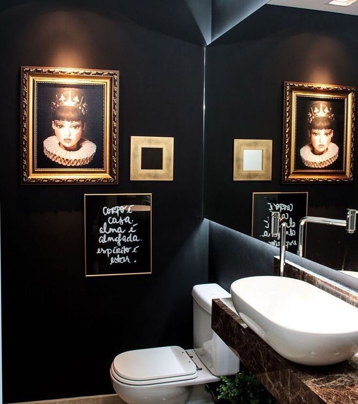 Черный цвет приемлет всякую веселую чертовщину, маленькие задорные безделицы, смешные картины. В таком туалете не только приятно слить продукты переработки, но и слить негативную энергию.