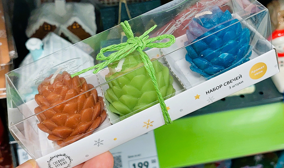 Ух ты, они еще и разноцветные! Это здорово! Каждый выбирает свой любимый цвет! Почему я ими заинтересовалась, потому, что глаз радуют эти милые зимние свечки-сосновые шишки, они такие хорошенькие! И цена недорогая, поджечь не жалко будет...