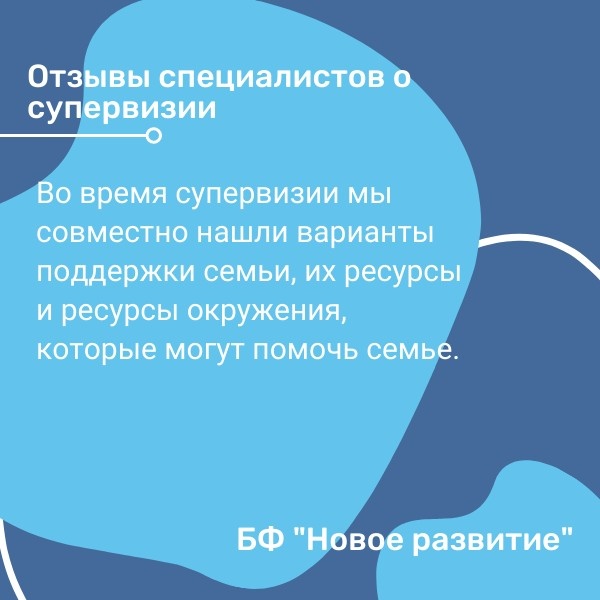 Мы собрали обратную связь от специалистов, которые прошли обучение у экспертов Благотворительного фонда "Новое развитие" и успели оценить достоинства социальной супервизии. Сейчас наши супервизоры работают в 13 регионах России. Десятки специалистов уже сложили своё мнение о супервизии. Из множества откликов, которые получили, мы выбрали часть, чтобы поделиться с вами в карточках.