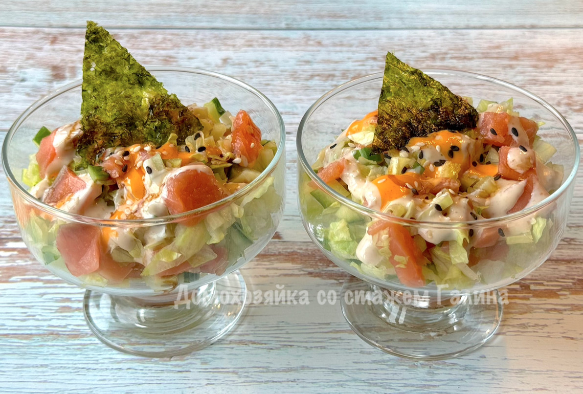 Здравствуйте, дорогие читатели! В выходные приготовила очень вкусный салат, который сама придумала. Возможно, такой рецепт уже существует, но мне он нигде не попадался. Друзья, этот салат непременно будет на моем новогоднем столе – он настолько восхитительный, легкий и сочный, что идеально подходит для праздничного ужина, особенно в ночное время, когда стоит воздержаться от тяжелых блюд. Мой муж оценил его на вкус, и он тоже хочет видеть это блюдо в нашем новогоднем меню. Поэтому спешу поделиться с вами рецептом – вдруг вы захотите включить его в свой кулинарный арсенал. Готовить этот салат удивительно просто, и на это не потребуется много времени – вы в этом сейчас убедитесь. В идеале, следует подавать это блюдо порционно, в элегантных креманках или на изящных тарелках. Хотя вкус остается неизменным, визуальный эффект трансформируется, даря каждому варианту уникальную атмосферу. Я предлагаю вам различные варианты, однако выбор остается за вами. Возможно, вы захотите добавить свою со