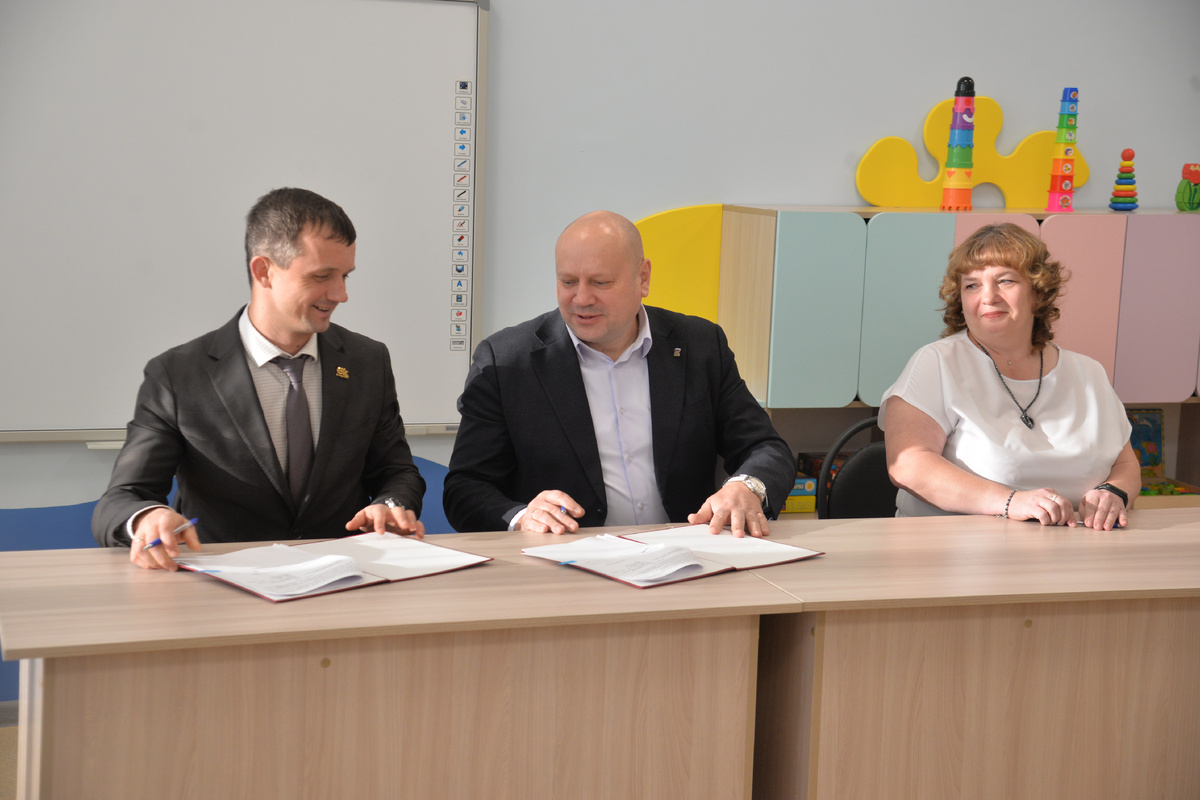 Мэр города Сергей Шелест и генеральный директор ГК «Стройбетон» Александр Сасин подписали очередное соглашение о сотрудничестве. В меценатском активе руководителя строительной компании это уже третий такой документ. В числе благополучателей школа №81 и спортивная школа №15 по шахматам. Теперь в этот перечень добавился филиал детского сада №44 в микрорайоне Амур-2. Накануне молодая мама Виктория Гаврилова со своей трёхлетней дочерью Настей зашли в новый детский сад, построенный совсем недавно в их микрорайоне. Совсем скоро, после завершения процедуры лицензирования, малышка будет сюда ходить, а пока вместе с родителями с нетерпением ждёт открытия. – Мы очень хотели пойти в садик в шаговой доступности. И когда узнали, что у нас построили детский садик прямо рядом с домом, были очень рады. Сегодня зашли посмотреть, и сказать, что нам здесь очень нравится – ничего не сказать. Современный, красивый, группы светлые, мебель яркая, удобная, много игрушек, во дворе игровые площадки, нам всё оче