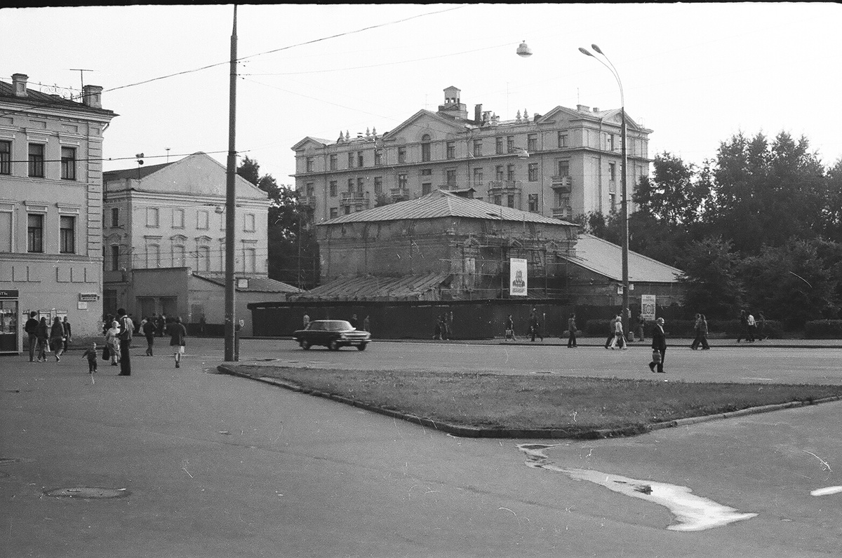 Давайте совершим очередное путешествие сквозь время, прогуляемся по волнам нашей памяти, вспомним, как тогда жил город и посмотрим, что изменилось за прошедшие годы. Поехали! ... На фото площадь у станции метро "Колхозная", ныне "Сухаревская", вид в сторону Сретенки, где можно увидеть неприметно кирпичное квадратное здание, которое на самом деле древний храм, только давно закрытый и с демонтированными куполами. Фото 1980 года, Нагайцев В новейшей истории вид с этой точки заметно преобразился, храм и колокольню восстановили, а площадь благоустроили Вид почти с той же точки только на Садовое кольцо и проспект Мира. На переднем плане вход в переход и метро. Фото 1985 года, Виктор Зырянов На переднем плане теперь много зелени и над входом в метро возвели капитальный павильон, а на заднем плане, застройка стала плотнее и гораздо выше, там снесли несколько домов и построили новые Теперь мы на Арбате. В первой половине восьмидесятых годов это была типичная улица старой Москвы, по которой ходи