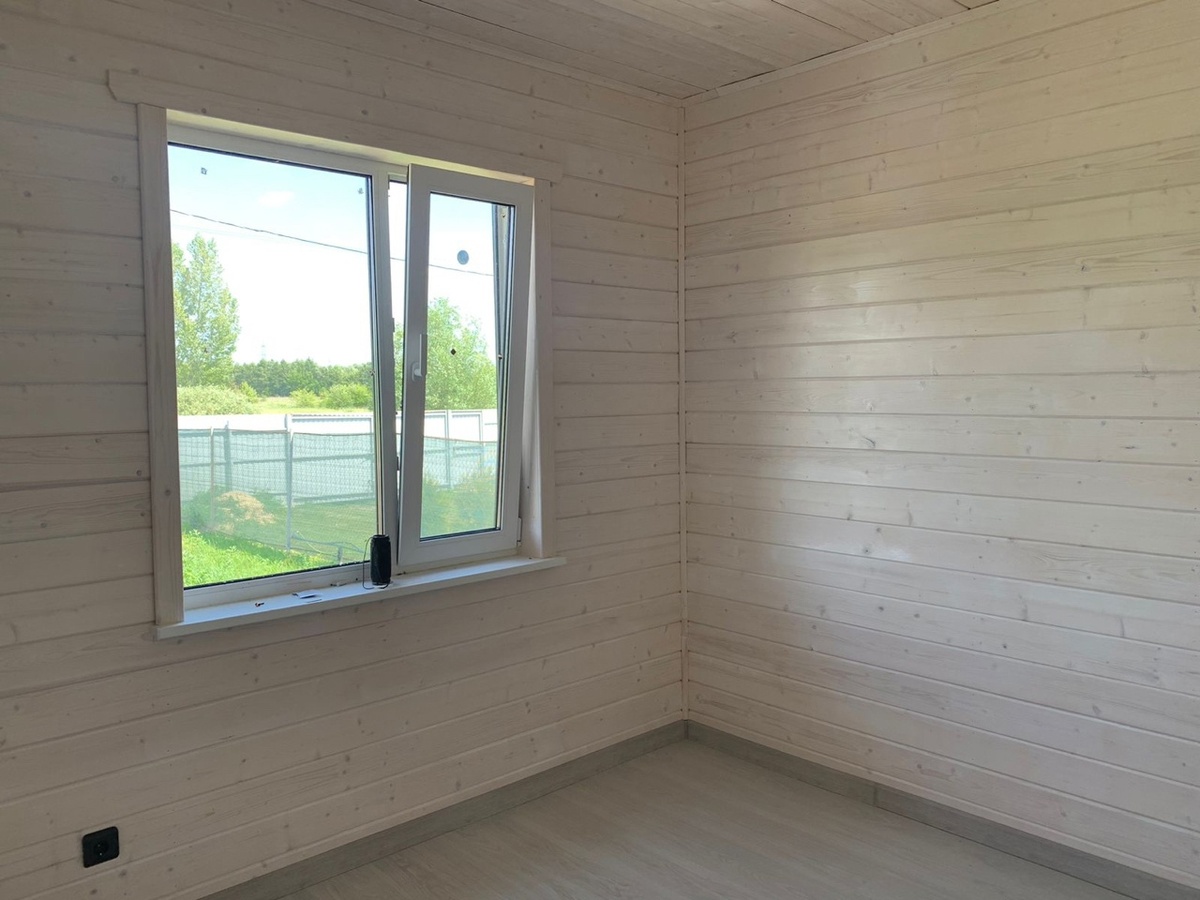 Популярным выбором, для внутренней отделки каркасных домов, является фальшбрус, который придает жилищу атмосферу уюта и тепла, напоминая о классическом деревенском стиле. Материал представляет собой разновидность вагонки, и создает эффект брусовых стен, при этом стоит он в разы дешевле. Имитацию бруса используют как для внешнего, так и внутреннего оформления любых строений, он имеет не только привлекательный внешний вид, но и устойчив к колебаниям температуры, при правильном уходе и своевременной обработке специализированными средствами прослужит долгий срок. Материал изготавливают из древесины, по сути это доска с профилированием, имитирующим брус. Для удобства монтажа, по бокам имеется соединения типа шип-паз, а тыльная сторона имеет вентиляционные канавки, которые предназначены для циркуляции воздуха, что бы стены могли «дышать». К основным преимуществам имитации бруса относят: экологичность и комфортный микроклимат в помещении, приятный древесный аромат, отличные тепло- и шумоизоля