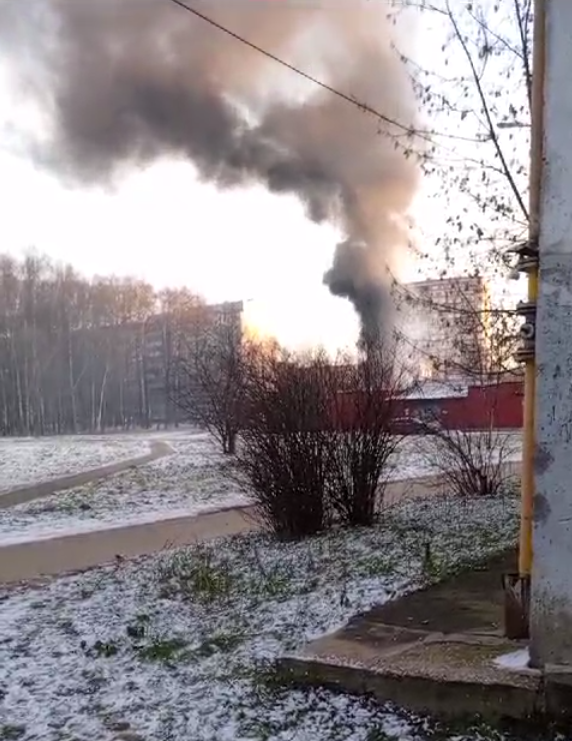 Фура с продуктами стояла на парковке за магазином, огонь появился из-под капота грузовика.