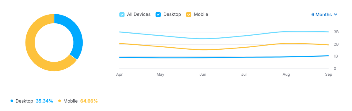 По данным сервиса Semrush, 65% трафика Яндекса идет с мобильных устройств.