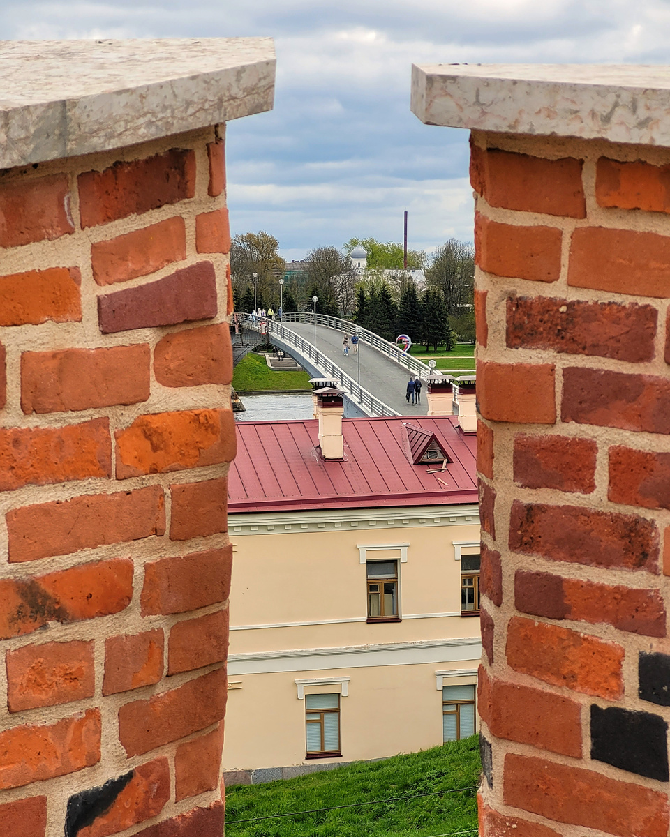 Новгородский кремль на Софийской стороне осмотрели — вот ссылка на статью — можно и на Торговую двигать. Конечно, по пешеходному мосту. Сейчас он именуется в народе Горбатым. А его деревянного предшественника называли Великим. Упоминается ещё в начале XII века — как главное место всех городских разборок. ...выясняли на мосту отношения и устраивали расправы. Ну а мы сейчас оттуда видами любуемся — впечатляют, куда ни погляди. И с «Уставшей туристкой» фоткаемся. Но это уже на Торговой стороне. Как же хороша на ней белоснежная аркада! Только она и сохранилась от старинного Гостиного двора. ...за неё и оценить, как смотрится Новгородский кремль сквозь изящные арки. А потом обернуться и присвистнуть. Храмы буквально друг на друге — их очень много. И сначала удивляешься — почему, вроде тут всего лишь торговали. Но начинаешь разбираться и понимаешь, что всё логичней некуда. ...в том числе как складские помещения. Потому что до XIX века только они и были в городе каменными. Остальные постройки