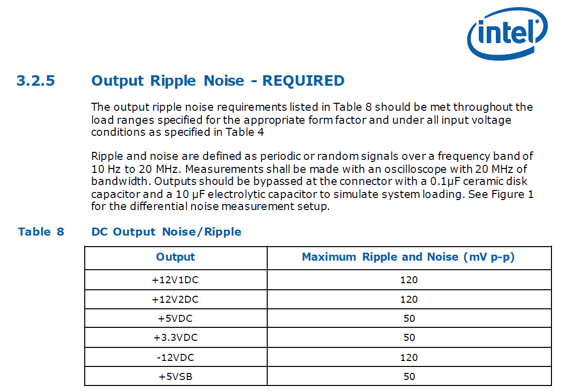 По поводу шумов и пульсаций: интересные выводы в этой статье Ремонт БП DeepCool PC350 (350W). В общем тут такое дело: я так и не смог разобраться в природе шумов регистрируемых осциллографом. Замерял в разных точках, разных блоков, с разными типами нагрузок, вообще без нагрузок, на выключенных блоках. Но, видимо дело в осциллографе (Rigol DHO814). Есть неустранимые шумы самого осциллографа, они смазывают картину замеров и дают искаженные результаты. Поэтому я удаляю столбец с замерами шумов и пульсаций как минимум до того момента, пока не смогу делать "чистые" замеры.