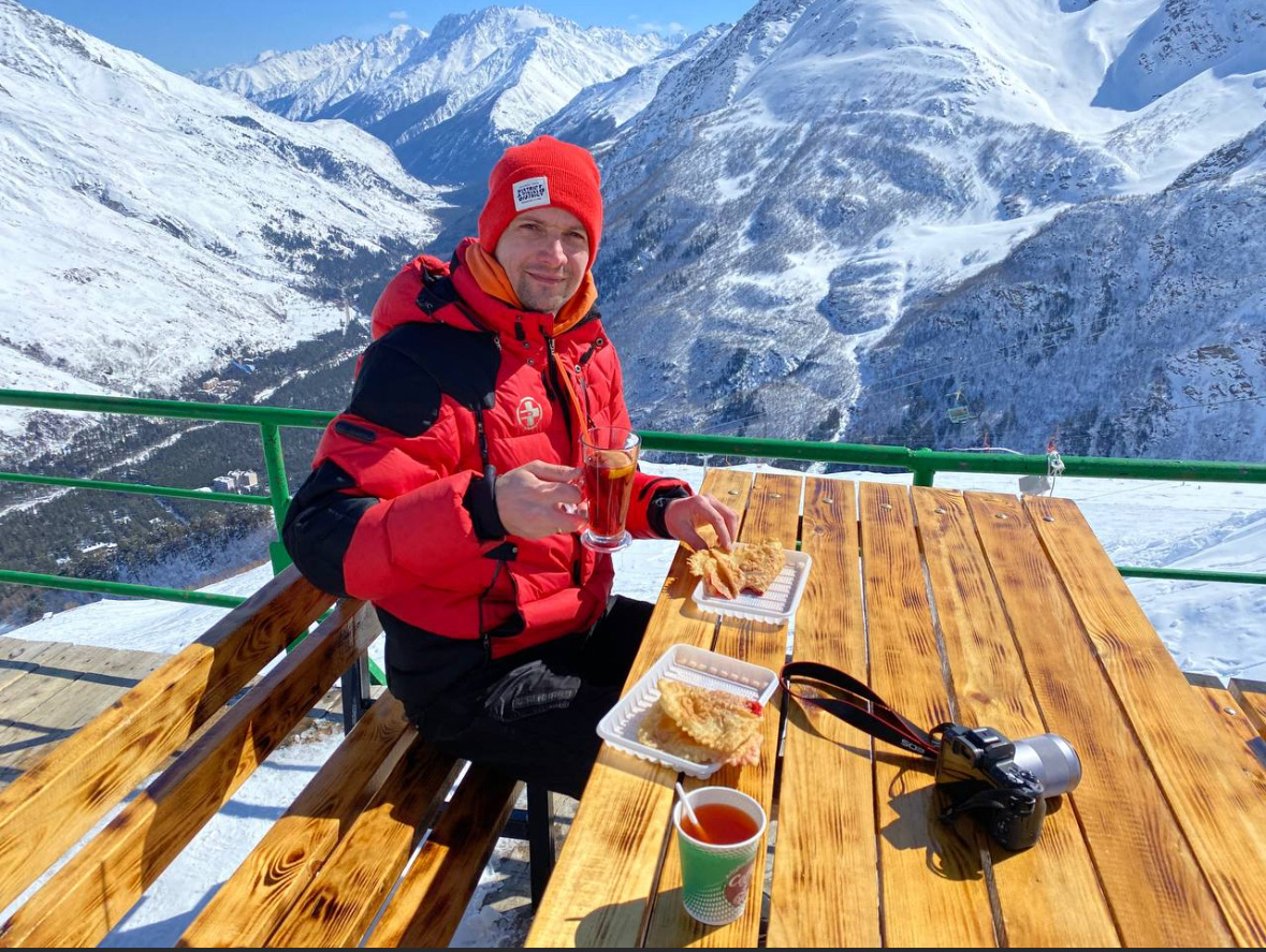 Эх, как же классно, преодолев трассу на лыжах или сноуборде, зарулить в одно из многочисленных кафе на вершине, взять местный глинтвейн на травах, облепиховый чай и знаменитый кавказский хычин. Обед в высокогорных кафе в горах Кавказа - одно из самых ярких воспоминаний из зимних поездок на Домбай и Эльбрус. В однин из дней, перекусывая между катаниями, разговорились с хозяином кафе. Было очень интересно, как же у них получается организовать такой непростой бизнес на вершине 3000 метров. Ведь надо доставлять на верх воду и продукты, хранить это все где-то, вывозить мусор. Первое, что рассказал нам хозяин: такие кафе - это в основном семейный бизнес. Родители обычно являются владельцами, и вместе с детьми и племянникам готовят еду, обслуживают посетителей. Хозяин кафе, где мы обедали, пошутил, что он спускался вниз на равнину всего два раза - когда женился и когда родилась его дочь. Как же доставляют воду и продукты в кафе? Летом это делать проще - поднимают на верх на внедорожниках