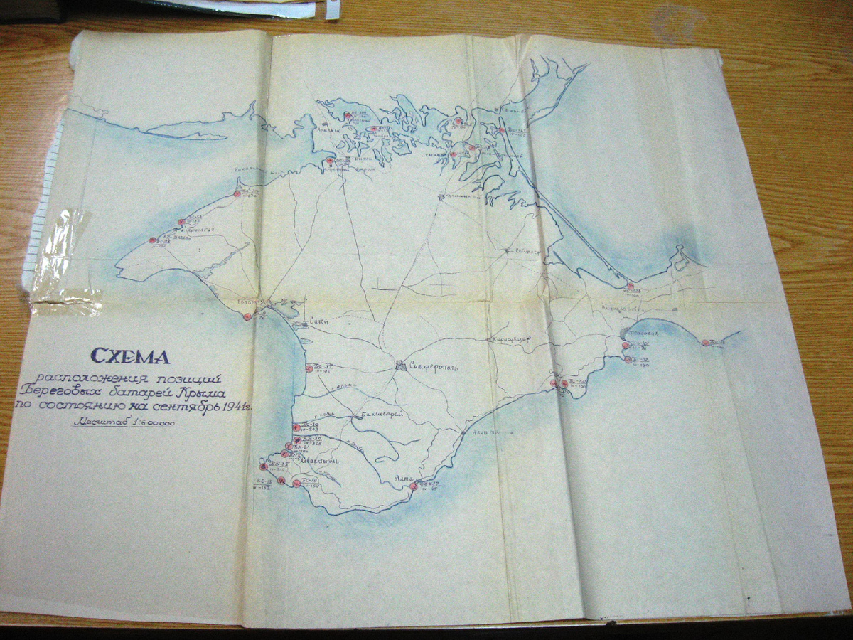 Крым в 1941 году имел практически круговую оборону, и береговые батареи располагались по всему побережью. Вот карта (и она не полная, были еще батареи, не показанные на этой схеме)