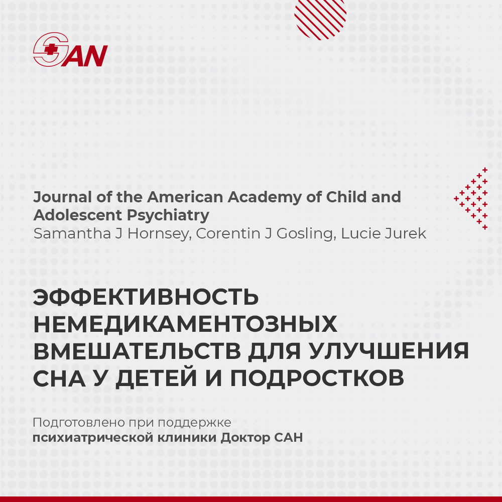 В Journal of the American Academy of Child & Adolescent Psychiatry опубликован систематический обзор и метаанализ, посвященный эффективности немедикаментозных методов коррекции нарушений сна у детей и подростков. Исследование охватывает широкий спектр интервенций, включая поведенческие подходы, светотерапию и использование утяжеленных одеял. Данные показали, что только поведенческие интервенции, включающие тренинг родителей, психообразование и разработку индивидуальных стратегий сна, продемонстрировали эффективность. Отмечалось улучшение таких параметров, как длительность сна, сокращение количества ночных пробуждений и улучшение настроения у детей. Эффект варьировался от малого до умеренного. У детей с расстройством дефицита внимания и гиперактивности отмечено снижение сопротивления ко сну, улучшение качества сна и снижение уровня тревожности. У детей с аутизмом улучшение сна выражалось в снижении общей степени нарушений сна. Однако большая часть результатов основана на данных низкой и