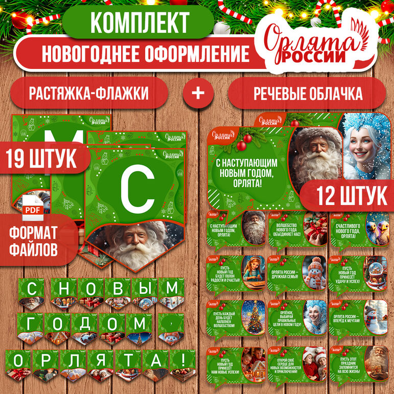 Новогодний комплект «Орлята России»: речевые облачка и растяжка-флажки | Оформление к Новому году