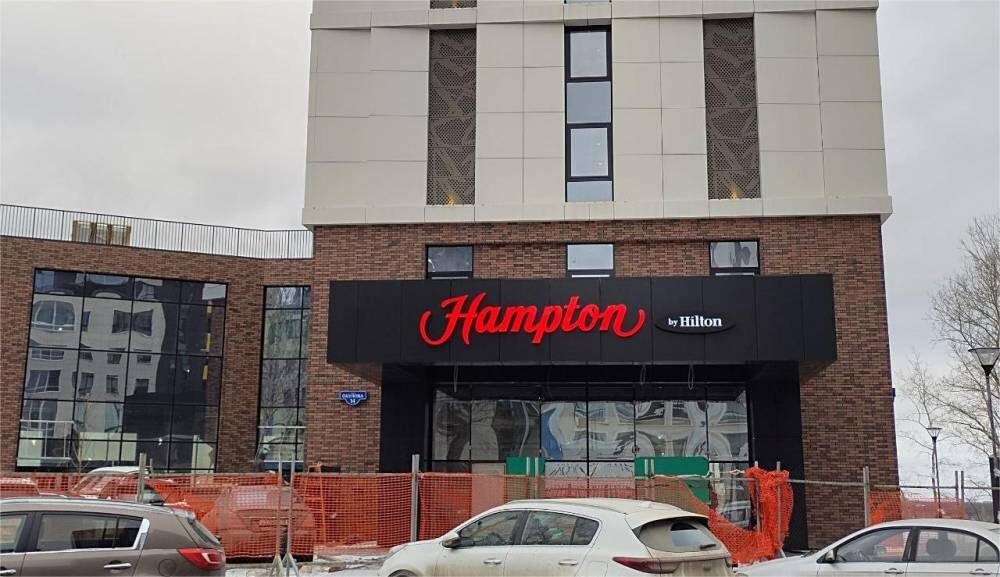 На здании гостиничного комплекса по ул. Окулова, 14 появилась вывеска Hampton by Hilton